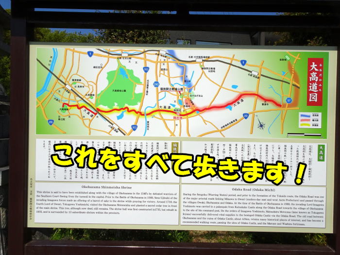 ふたつめの理由は、ほぼ街道を歩き妄想に浸るという、高度なスキルが必要だから。城跡らしいのは大高城のみ。史跡は桶狭間神明社くらいで(立ち寄りませんけど)、ひたすら旧街道の大高道をもくもくと歩きます。