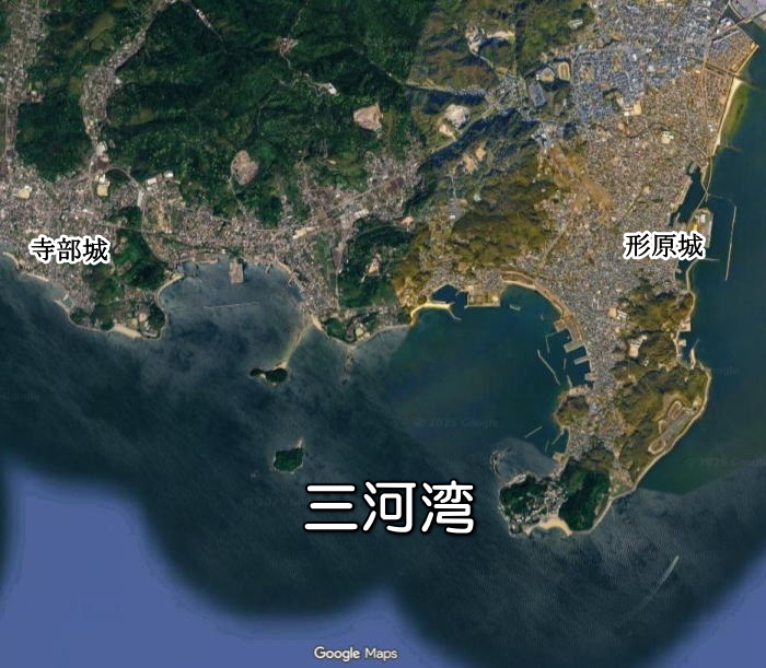 形原城は松平一族の形原松平氏の城です。海に面した城で水軍を持っていたといわれています。周辺を一望できる小山にあり、城の周りには城郭関連の字名もたくさん残ります。